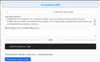 يتميز الملحق بواجهة سهلة الاستخدام توجه المستخدمين خلال عملية إنشاء رسالة التغطية. بعد ملء الحقول المطلوبة، يمكن للمستخدمين إنشاء ومراجعة وتحرير رسائل تغطيتهم قبل تنزيلها بتنسيق Word. يدعم CoverCraft تحميلات PDF للسير الذاتية، ويقدم قوالب قابلة للتخصيص، وهو مجاني تمامًا للاستخدام، مما يجعله موردًا قيمًا للباحثين عن عمل عبر مختلف الصناعات.
